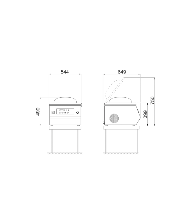 - Máquinas de embalagem a vácuo controladas por sensores, com barra de vedação de 450 mm, com máxima simplicidade de uso e componentes funcionais de alta qualidade. Inclui bomba Busch.
