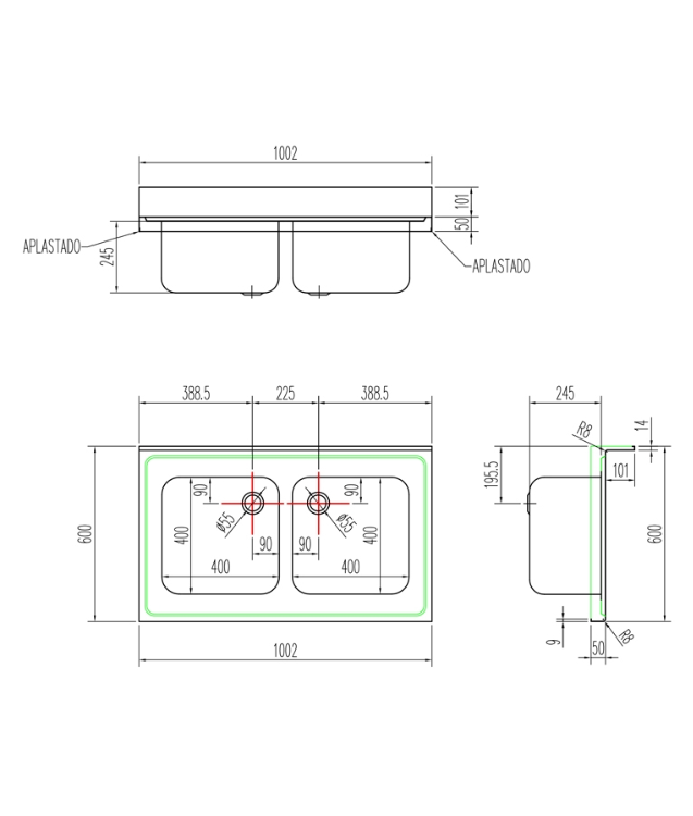 Fabricado inteiramente em aço inoxidável AISI-304 18/10.