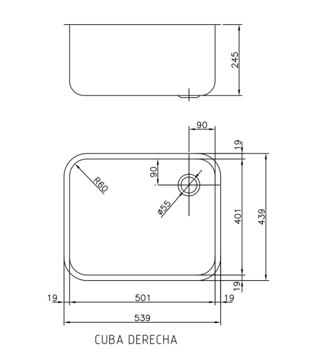| Medidas cubeta (mm) | 500 x 400 x 250 |