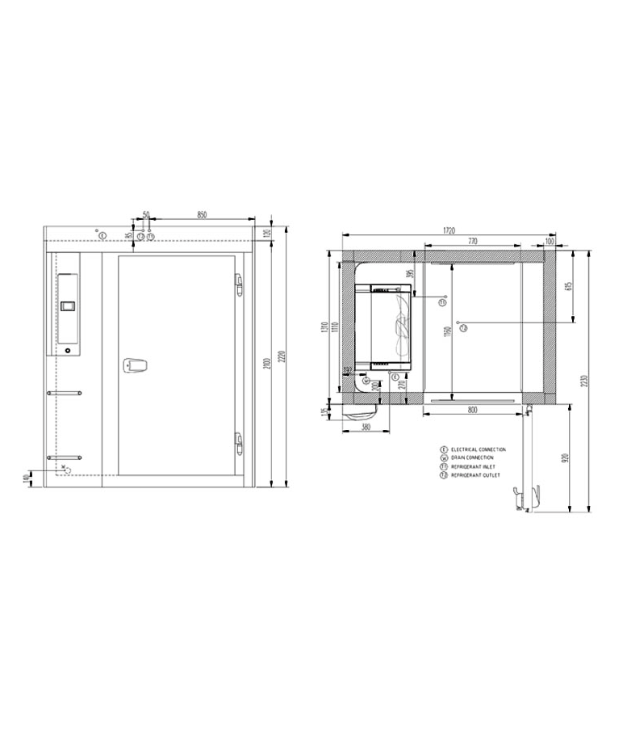 - Possibilidade de equipar as células com rampa para facilitar a introdução dos carrinhos GN 1/1 e GN 2/1 (acessório).