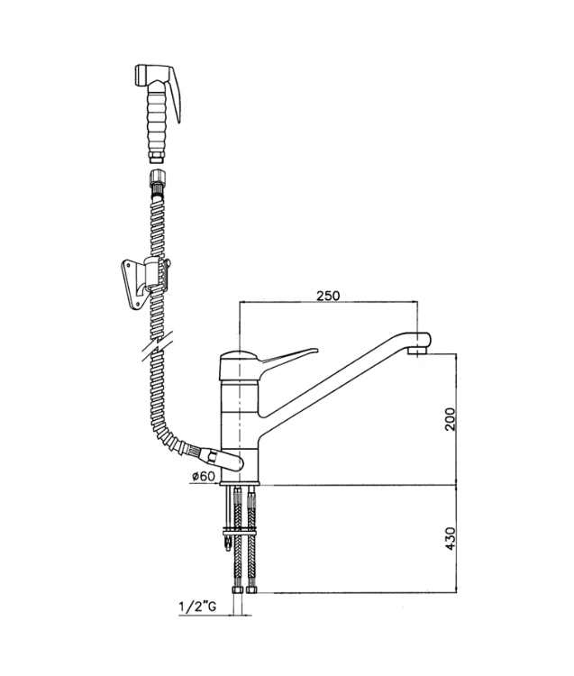 | Descrição | Torneira monocomando 2 águas com chuveiro e suporte de parede. Comprimento flexível 1.000 mm. |